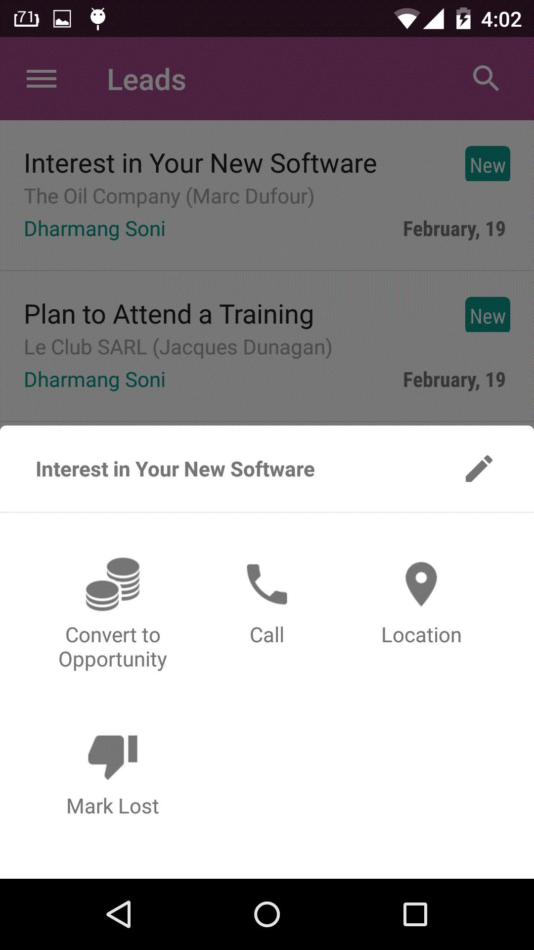 This is a beta version of the Odoo CRM mobile app. To suggest improvements and/or give feedback, please go to Google Play.